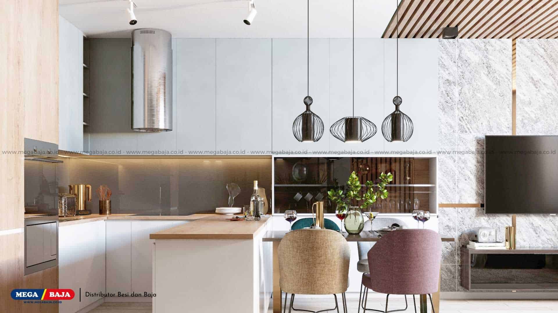 7. Dapur Estetik dari Metal dan Kayu