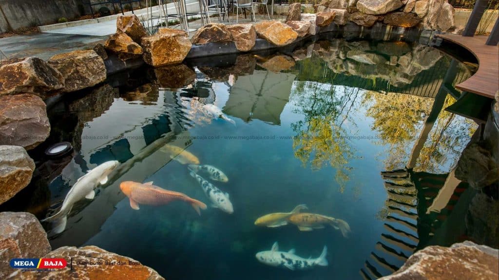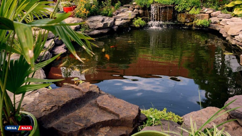 Apapun materialnya, pastikan kolam dilapisi waterproofing agar tidak bocor dan struktur tetap kuat. Lapisan anti air ini juga menjaga kualitas air stabil sehingga ikan hidup lebih sehat.