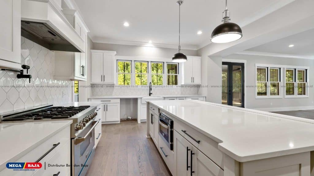 Dapur selalu rentan terhadap noda minyak, air, dan bahan makanan. Dengan material tepat, dapur tetap bersih tanpa menghabiskan banyak tenaga. Agar tetap fungsional, pilih material yang mudah dirawat, seperti: