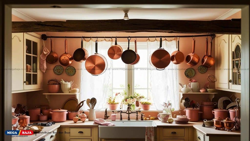Kelebihannya, rak panci ini begitu serbaguna. Rak bisa digantung di plafon (yang merupakan cara tradisional yang ikonik) atau ditempel di dinding (biasanya di atas kompor agar mudah dijangkau). Usahakan memilih gantungan yang senada dengan aksen atau handle kabinet di dapur kamu, ya. Supaya tampak rapi dan menyatu secara keseluruhan.